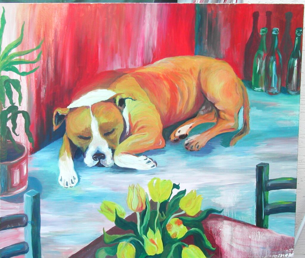 Öl auf Leinwand, ca. 100cm x 70cm, Hund, 1998