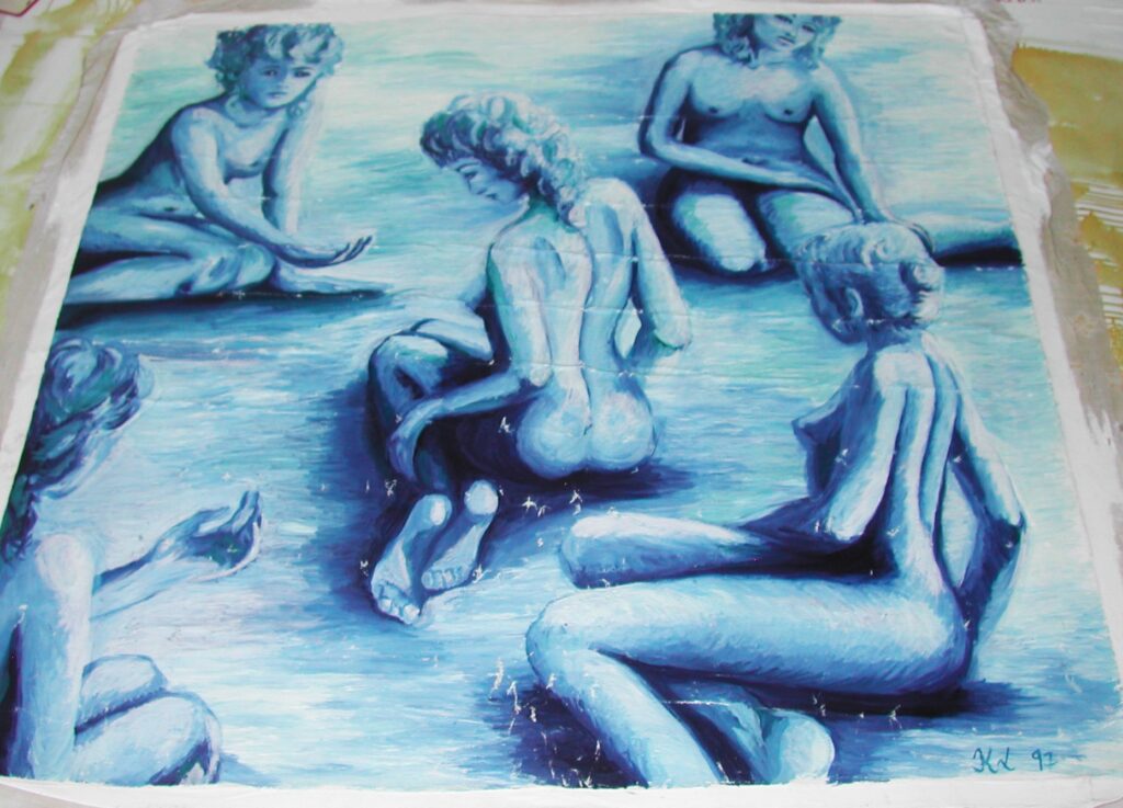 Öl auf Leinwand, ca. 100cm x 100cm, Badende, 1992