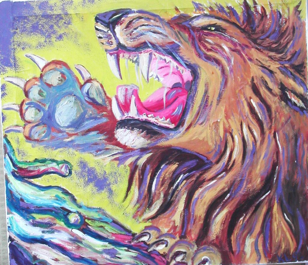 Öl auf Leinwand, ca. 100cm x 90cm, Löwe, 1993