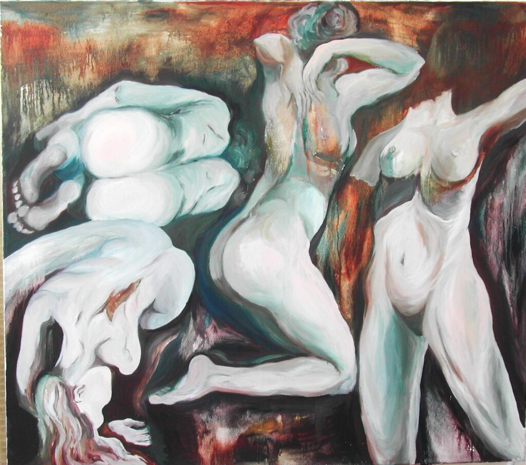 Öl auf Leinwand, ca 100 x 100 cm, Tänzerinnen, 1999
