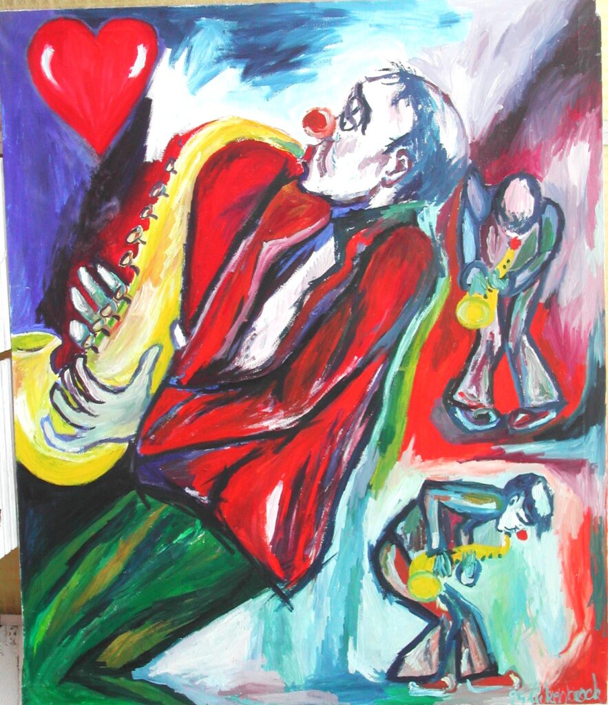 Öl auf Leinwand, ca. 110 cm x 80cm, Saxophonist, 1992