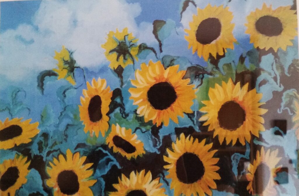 Ölbild, Sonnenblumen, 1997, ca. 130 x 80 cm (Privatbesitz)